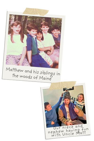 Matthew is the oldest of six, including the youngest two who came to his family through adoption. He grew up in New England, not far from Boston. He spent the first 15 years of his professional life coaching youth sports, which was most impactful because of the many young people he had the opportunity to mentor and support. In 2016, he went back to school to pursue a graduate degree to become a therapist and now he works with student-athletes at the college level. Both as a coach and, now, as a therapist he has devoted himself to helping other people’s children and cannot wait to have the chance to be a father himself. Matthew loves to spend time outside, wandering through the mountains on a hike or mountain bike ride. Growing up in New England gave him a love for all four seasons, especially winter, and skiing is one of his favorite things. He also appreciates the analog way of life and enjoys listening to vinyl records and cassette tapes as well as reading newspapers, magazines, and novels. Sports have always been a family pastime, thanks to his dad, and he loves catching a game as often as possible.
