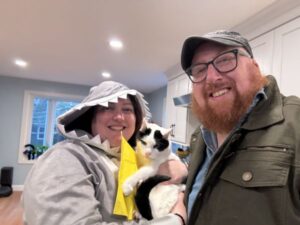 We are a nerdy, loving couple looking to expand our family through adoption. We have been together for 10 years and married for eight. Our home in Hopedale is located on a quiet cul-de-sac with plenty of space in the house for 1-2 children and a yard for them to play. Moo, our 18 year old cat, is very friendly , gentle with children, and loves attention. Our work schedules allow for flexibility when it comes to attending meetings and appointments for a child as Tim works from home and Jen works three days a week at a clinic close to home.